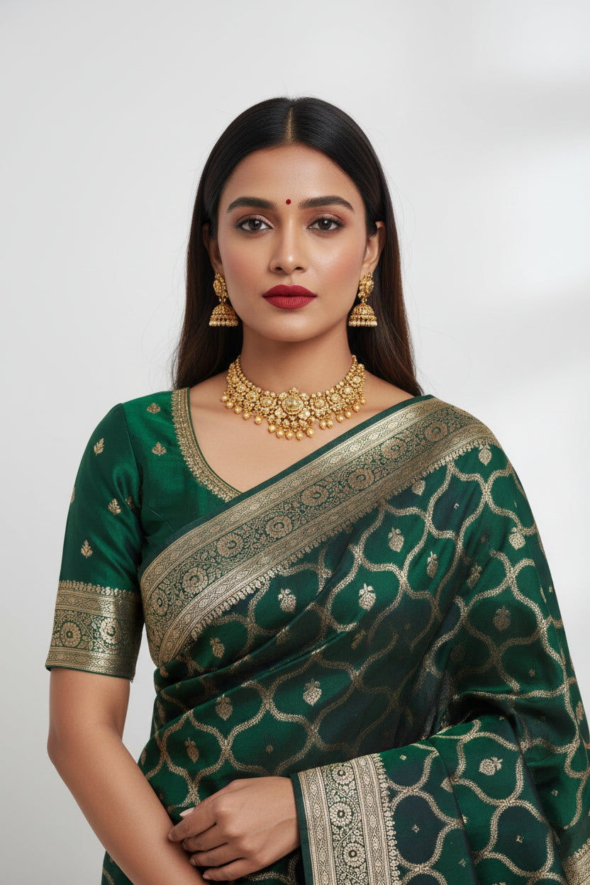 Banarasi Saree-deep emerald green