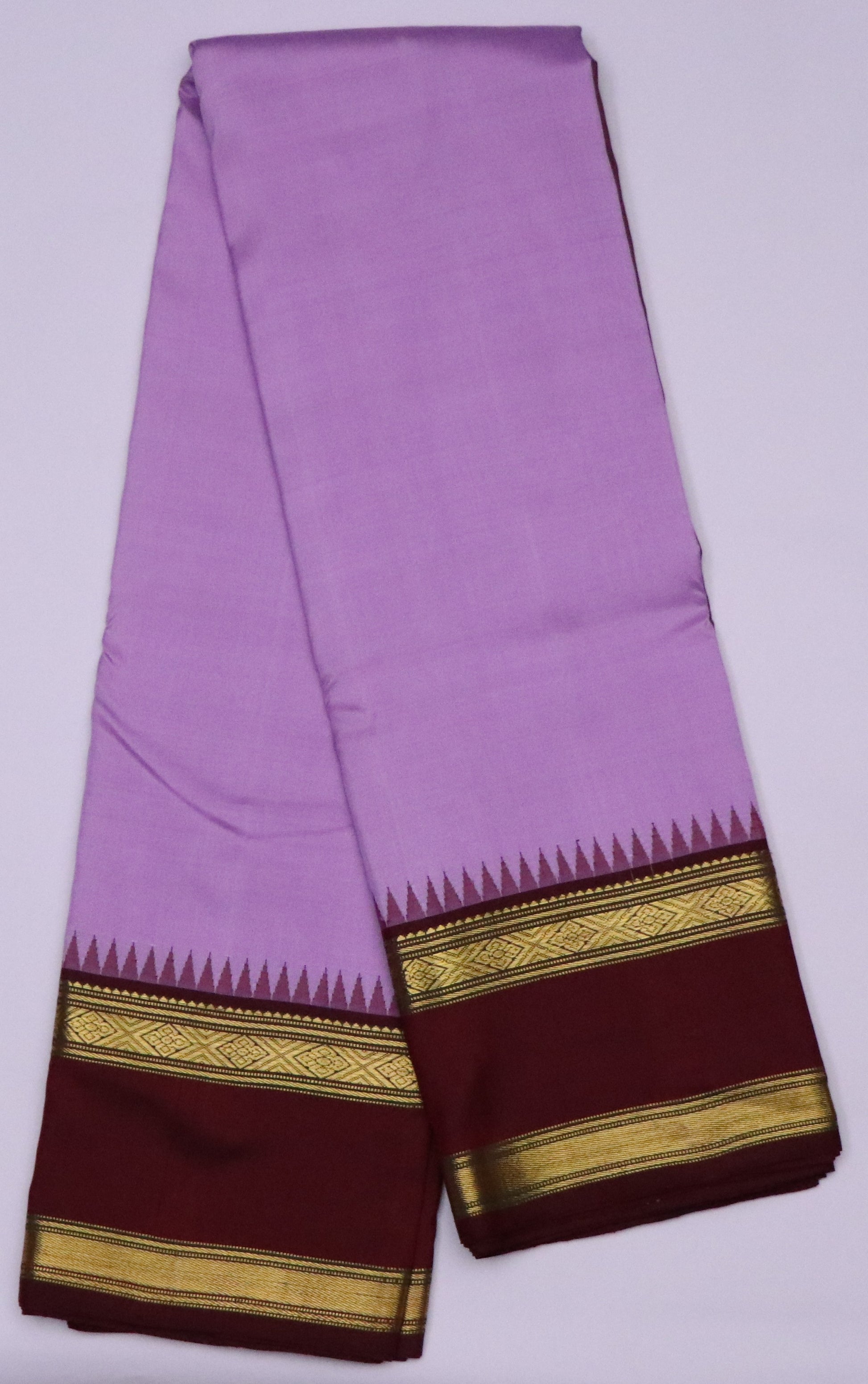 Kanchi Silk-Body-lilac purple-Border-bentex - Deep wine maroon- Traditional temple-style border