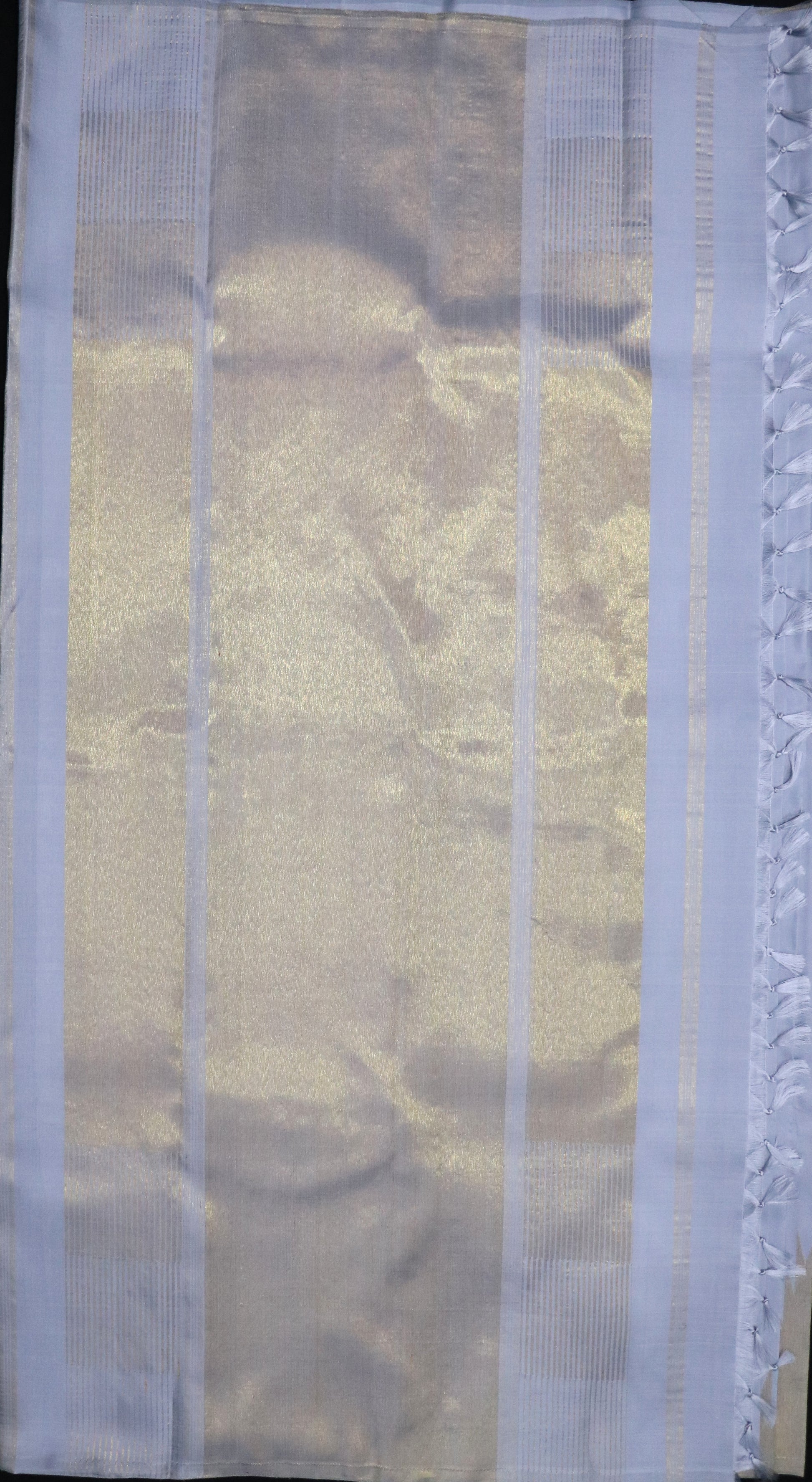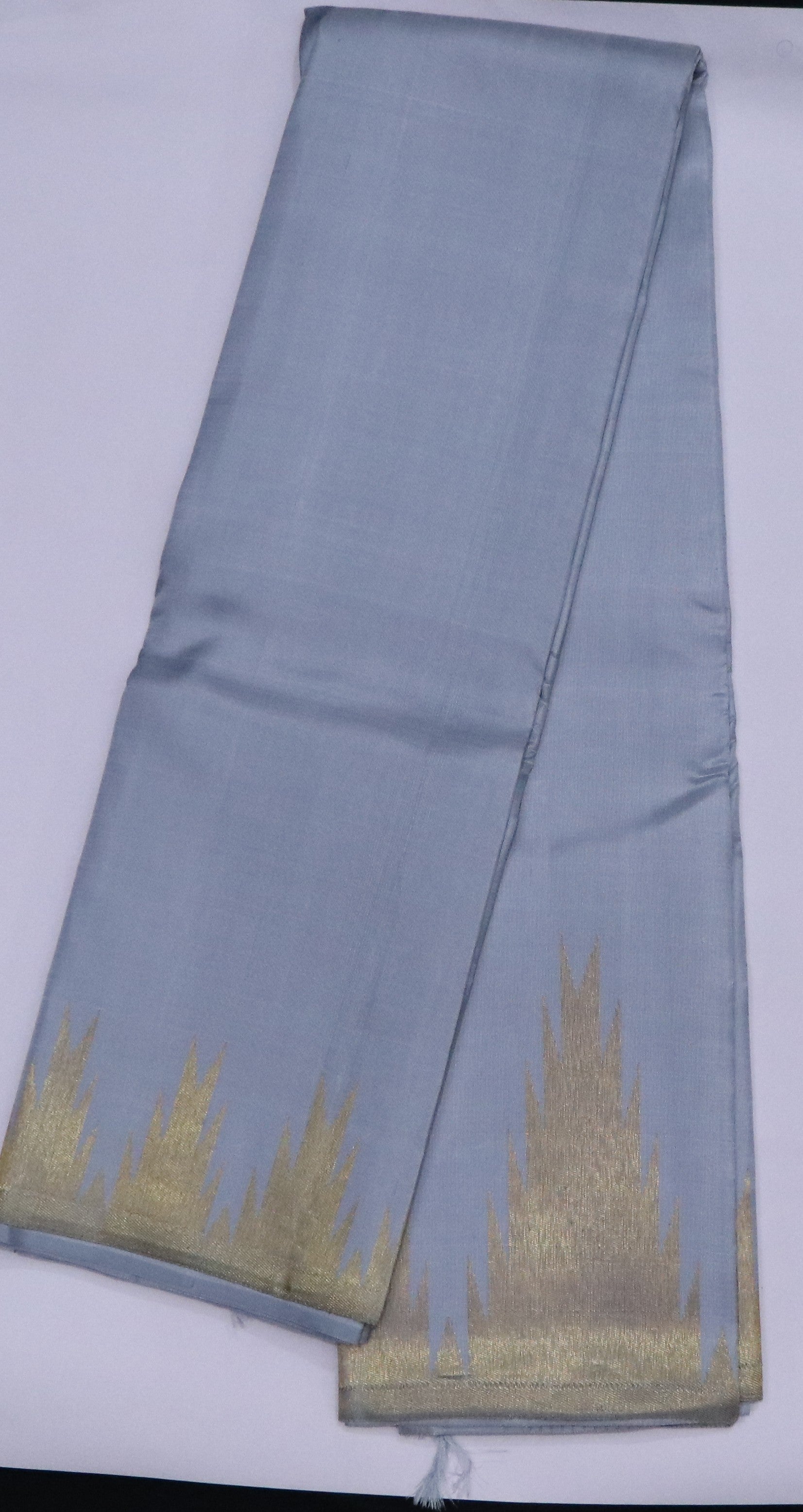 Ash Blue Kanchi Silk Saree with Gold Temple Border | Festive Traditional Silk Saree | Daaraa Silks