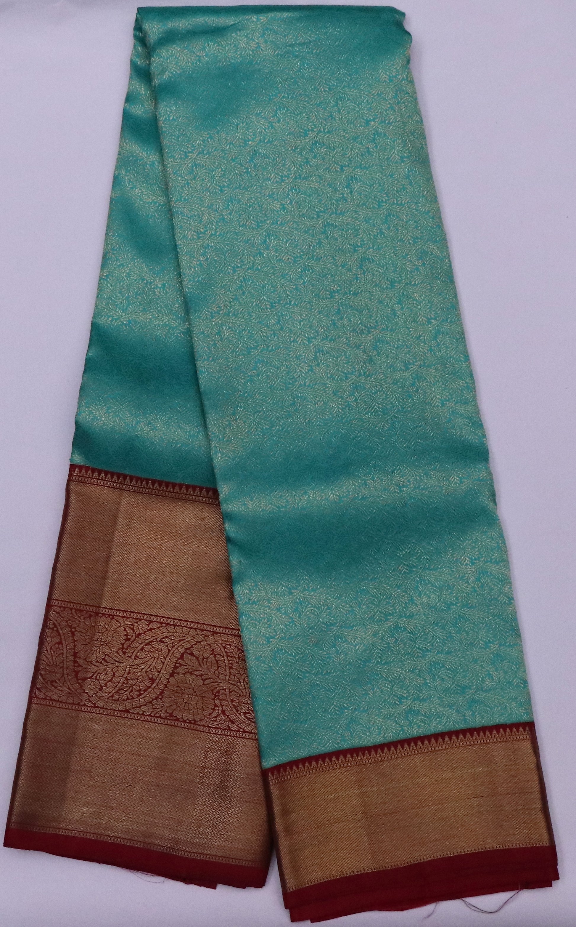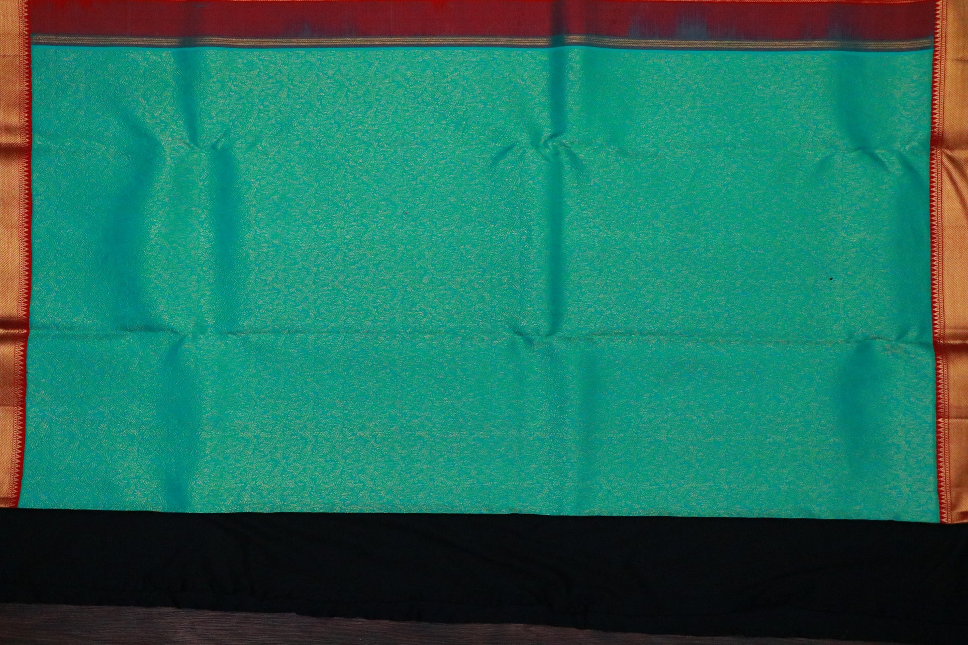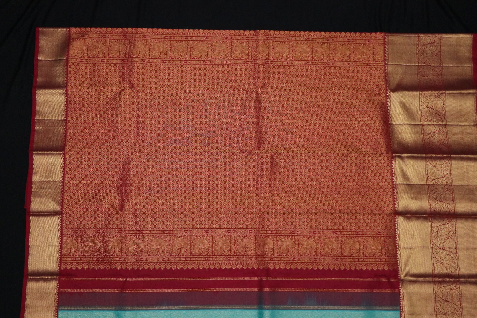 Kanchi Silk-Body-Sea-green-Deep maroon border-self-jacquard weave