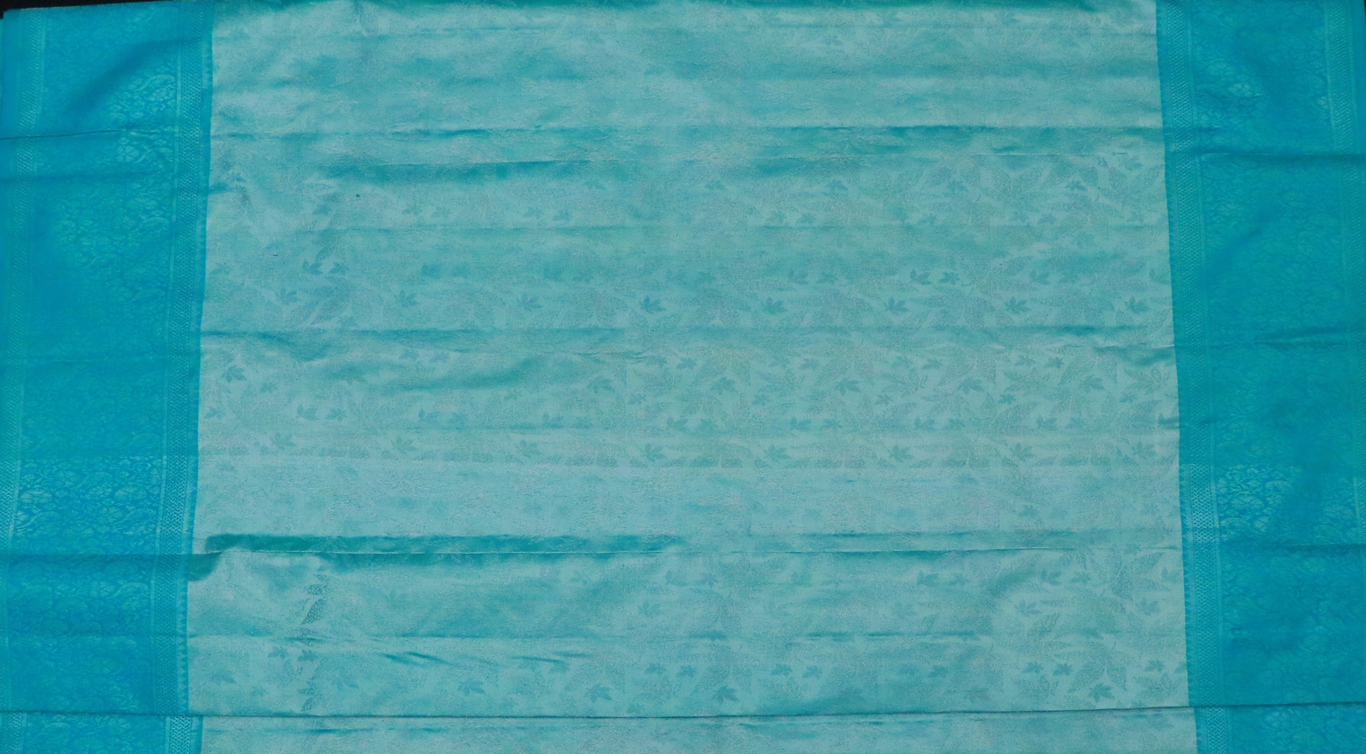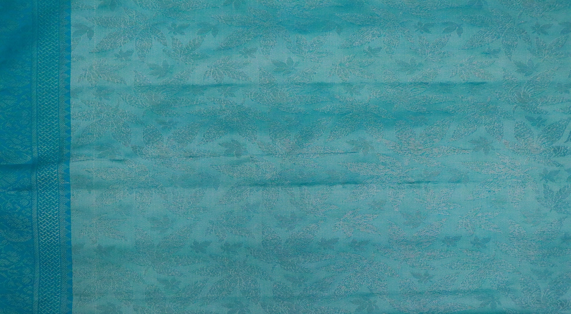 • Design: Soft aqua and sea-green body with self-jacquard floral pattern, complemented by a contrasting deep teal border