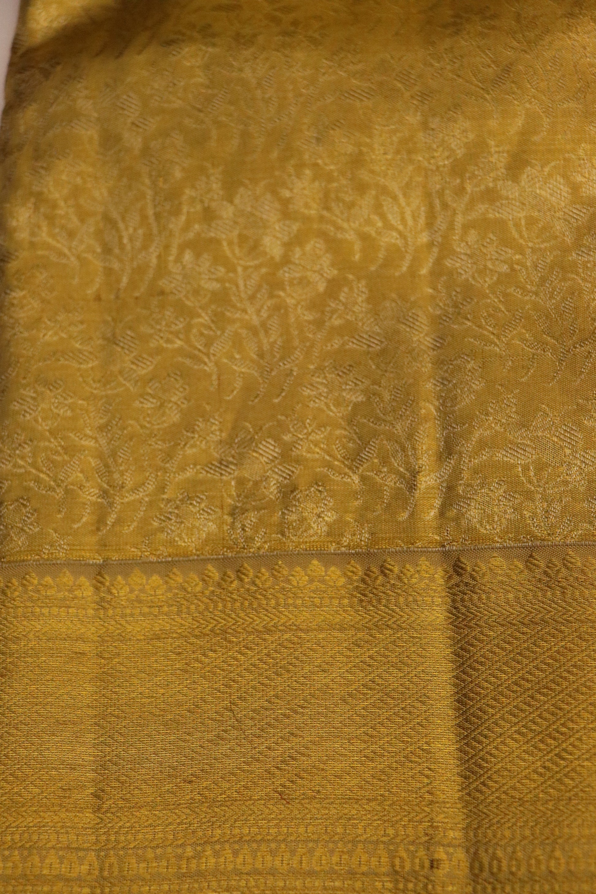 Antique Gold Kanchi Silk Saree with Floral Jacquard | Festive Silk Saree | Daaraa Silks