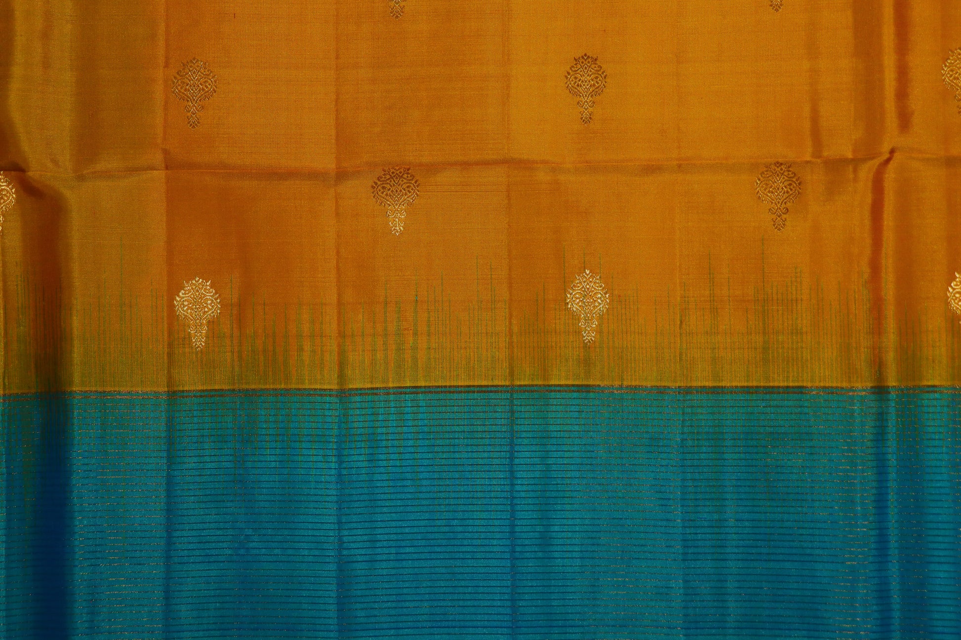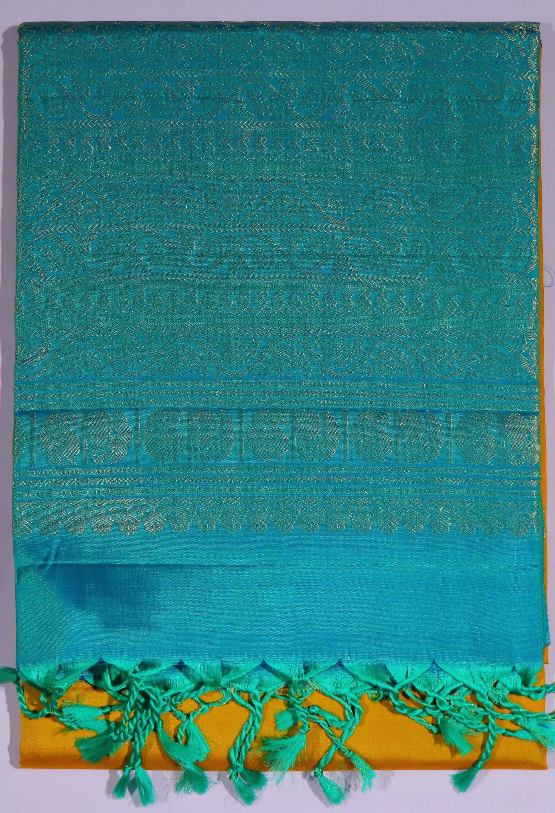 ✔ Striking mustard-gold border creating a vibrant traditional contrast